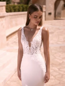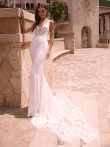 Fit and Flare Brautkleider betonen die Silhouette außerordentlich reizvoll und erscheinen gleichzeitig elegant oder verspielt. Die bis über die Hüften schmale Linienführung wirkt sehr verführerisch. Das Rockteil endet fließend und bietet angenehme Beinfreiheit. In Sachen Looks steht Dir bei diesem Brautkleid nahezu jeder Stil offen, denn ein Fit and Flare Kleid ist sowohl im eher zurückhaltenden Design als auch mit glanzvollen Details oder edler Spitze etwas ganz Besonderes.