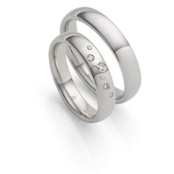 Das steuert Ihr beim Designen maßgeblich selbst (Legierung, Anzahl der Steine…). Mit 1300-1800€ für beide Ringe zusammen hat man ein gutes Durchschnittsbudget. Wenn man es ganz schlicht mag, kann es auch deutlich weniger sein. Spielt gerne vorab schon mit dem 3D-Designer, dort werden Euch auch bereits Preise angezeigt.